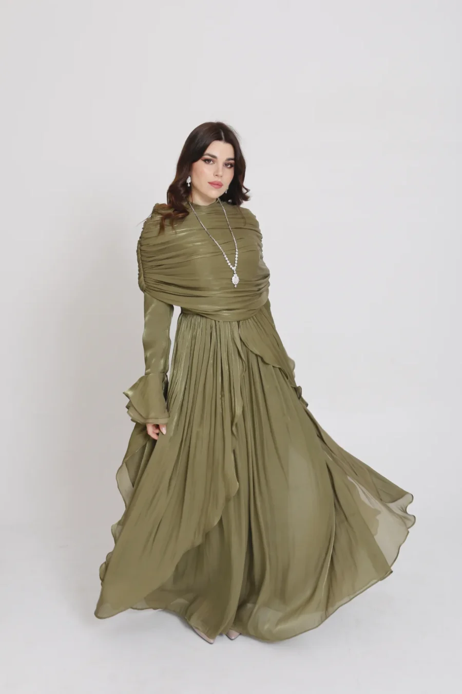 An elegant organza dress designed in a two-piece style, offering a light and flowy silhouette with refined details that add graceful movement. Comfortable fit, ideal for special occasions and gatherings. Available in four colors