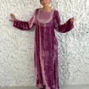 تصميم فاخر بقماش مخمل أنيق مع طبقة اورجنزا، مزيّن بشك راقٍ ثقيل دبل منفّذ بعناية على الصدر، يمنح القطعة حضورًا قويًا ولمسة فخامة واضحة. قصة انسيابية متوازنة تجمع بين الأناقة والرقي