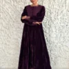 A luxurious design crafted from elegant velvet layered with organza, featuring heavy double hand embellishment across the front for a bold and refined finish. The flowing silhouette adds balance and sophistication to the overall look