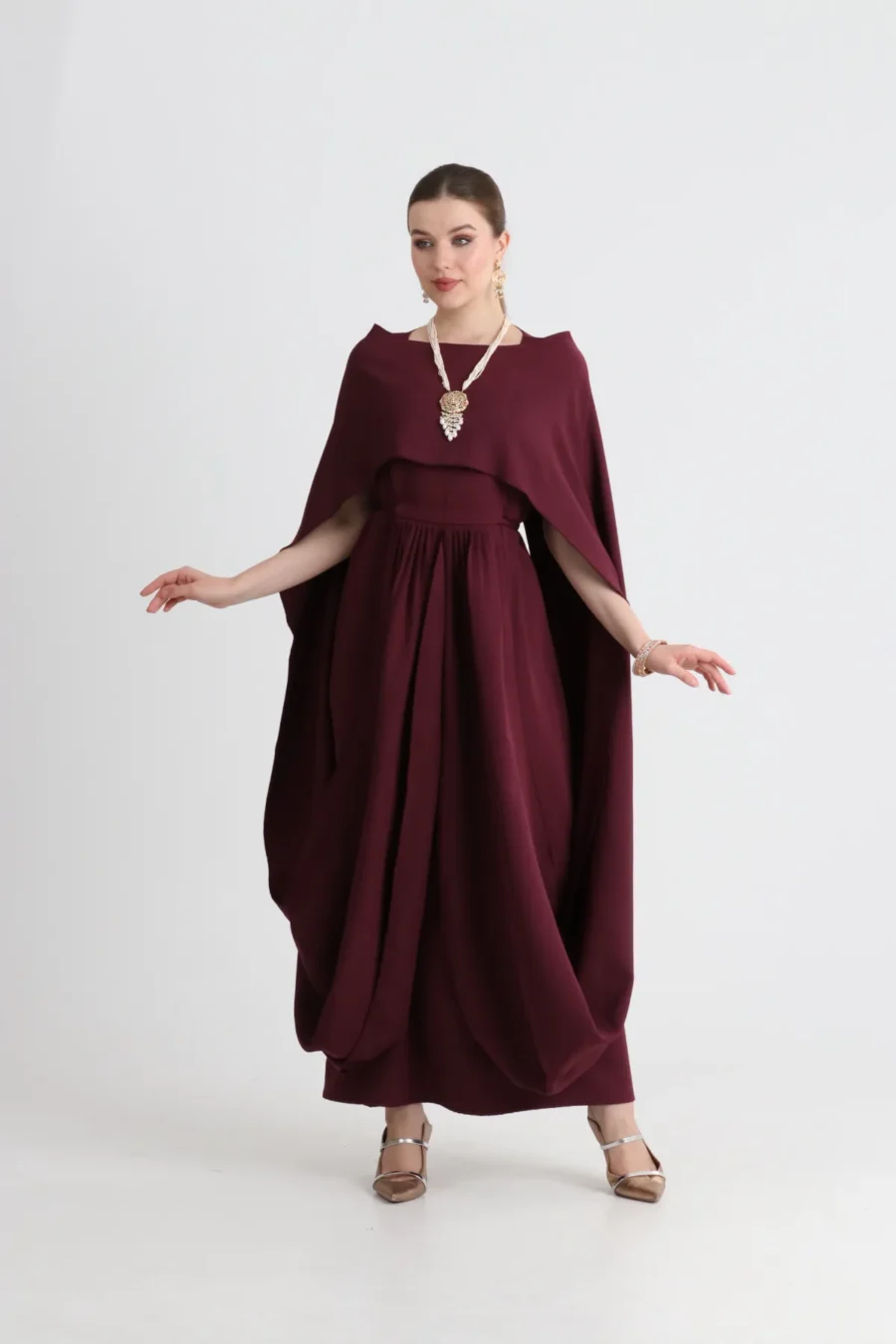 تصميم أنيق وعصري، منفّذة من قماش كريب ناعم بانسيابية عالية ،تتميّز بقصّة واسعة مع أكمام طويلة فيها حركة تضيف لمسة فخامة وحضور راقٍ